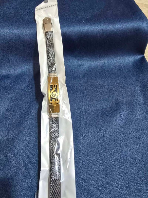 Dit is een lederen armband voor heren, versierd met een doodskop of solsleutel in een goudkleurige afwerking. Deze stijl wordt vaak geassocieerd met een stoere of punk/gothic uitstraling en is populair als modeaccessoire.