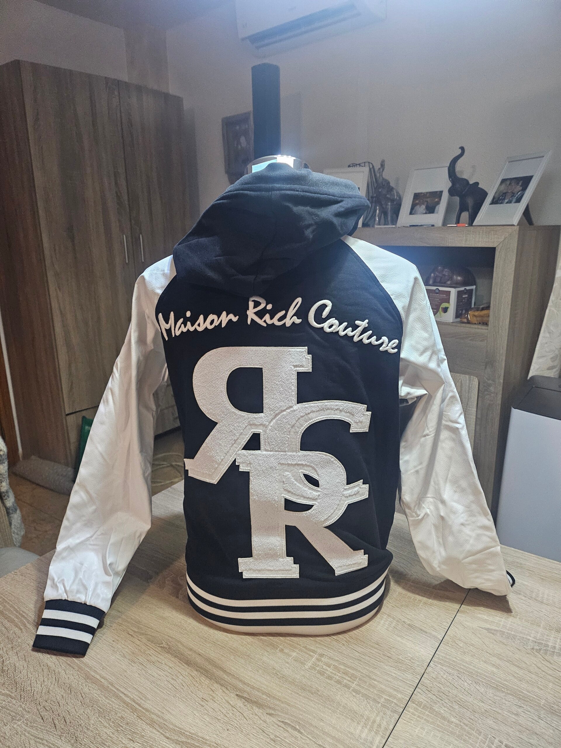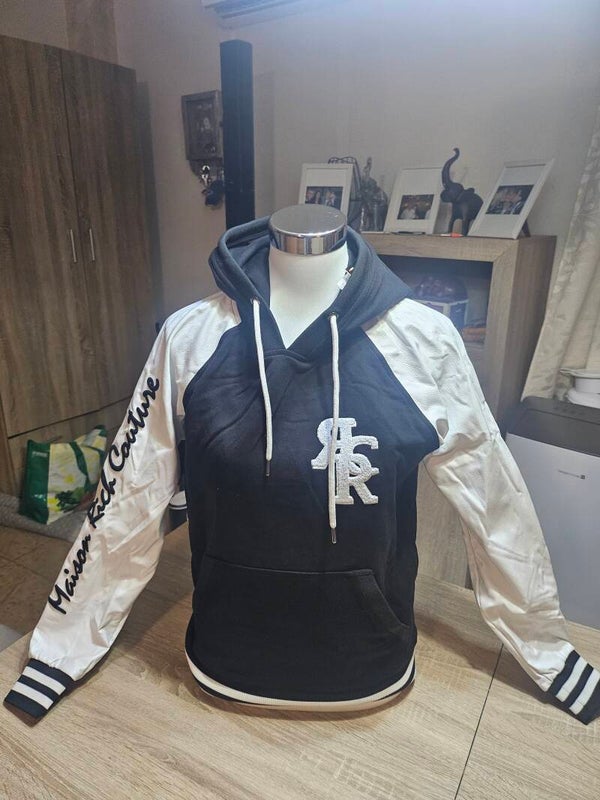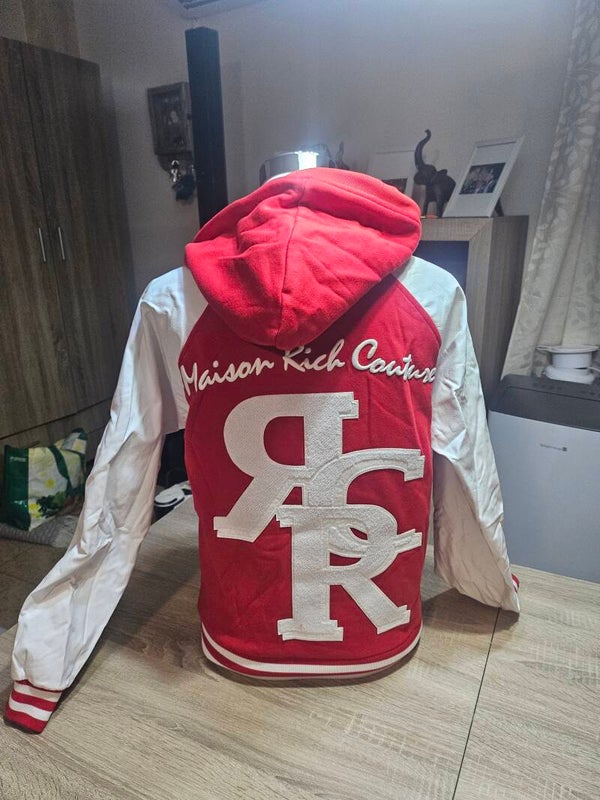 - Varsity-stijl: Mode-items met grote letters (zoals de "R" op deze hoodie) worden vaak geassocieerd met merken als rich! Couture